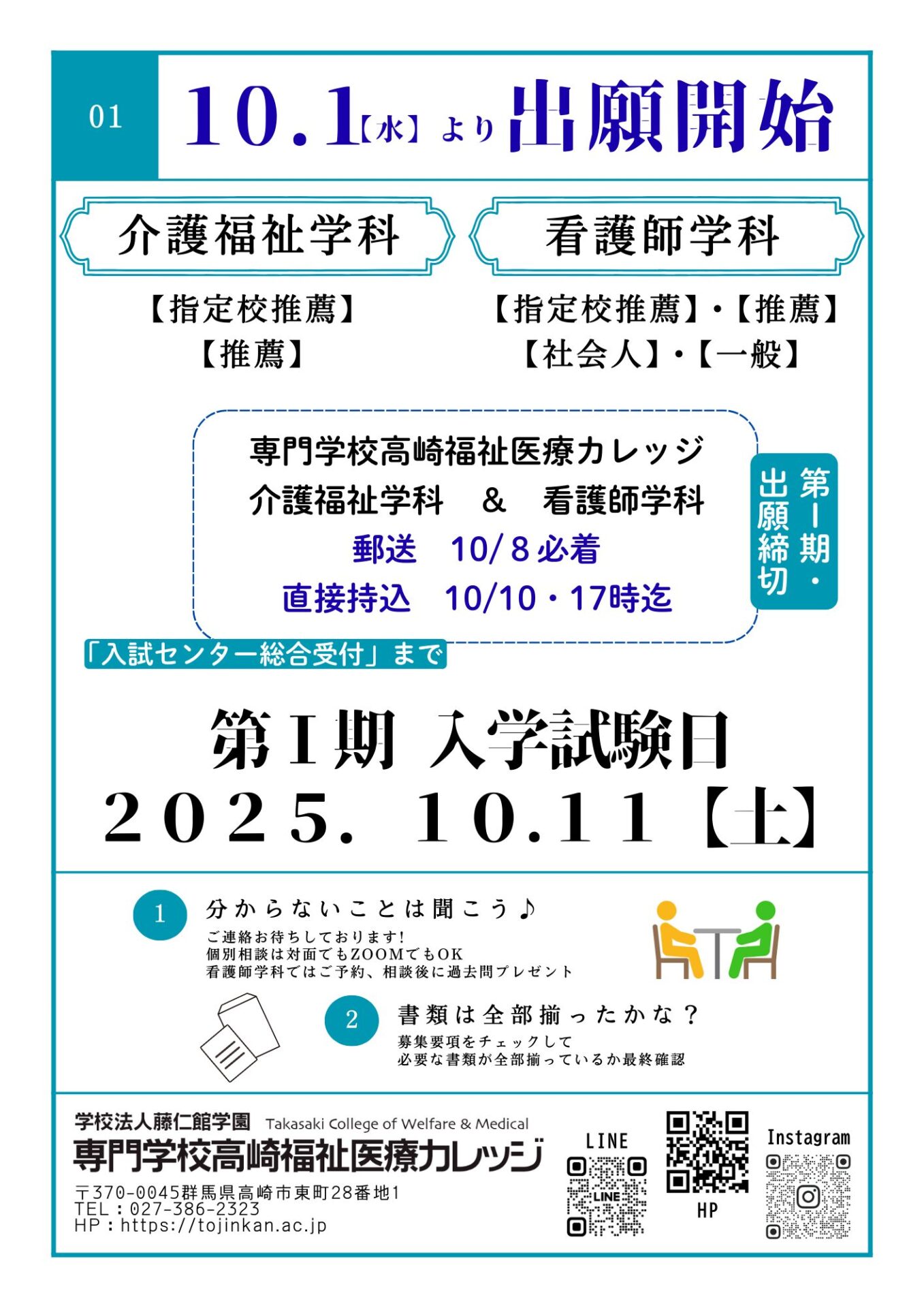 [通学課程]介護福祉学科&看護師学科の入学試験の出願が10月1日(水)よりスタートします!