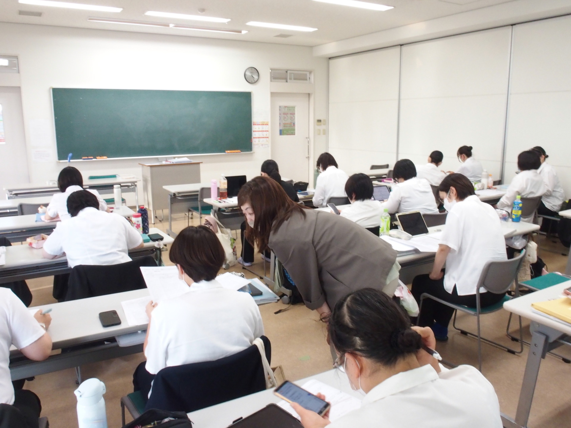 本日、高崎高松町キャンパスにて1年生に対する「成人看護学実習前A日程スクーリング」を行いました。20名の学生が出席。実習前スクーリングでは、①実習施設のオリエンテーション、②実習目標の立案、③領域の事前学習が主な授業内容となります。実習目標は、各学生2つ立案をしておりました。