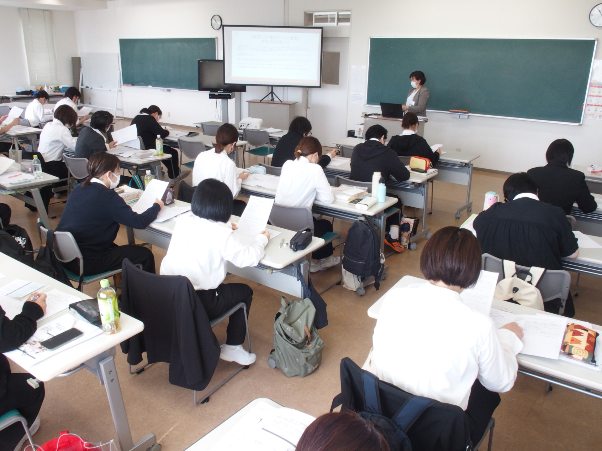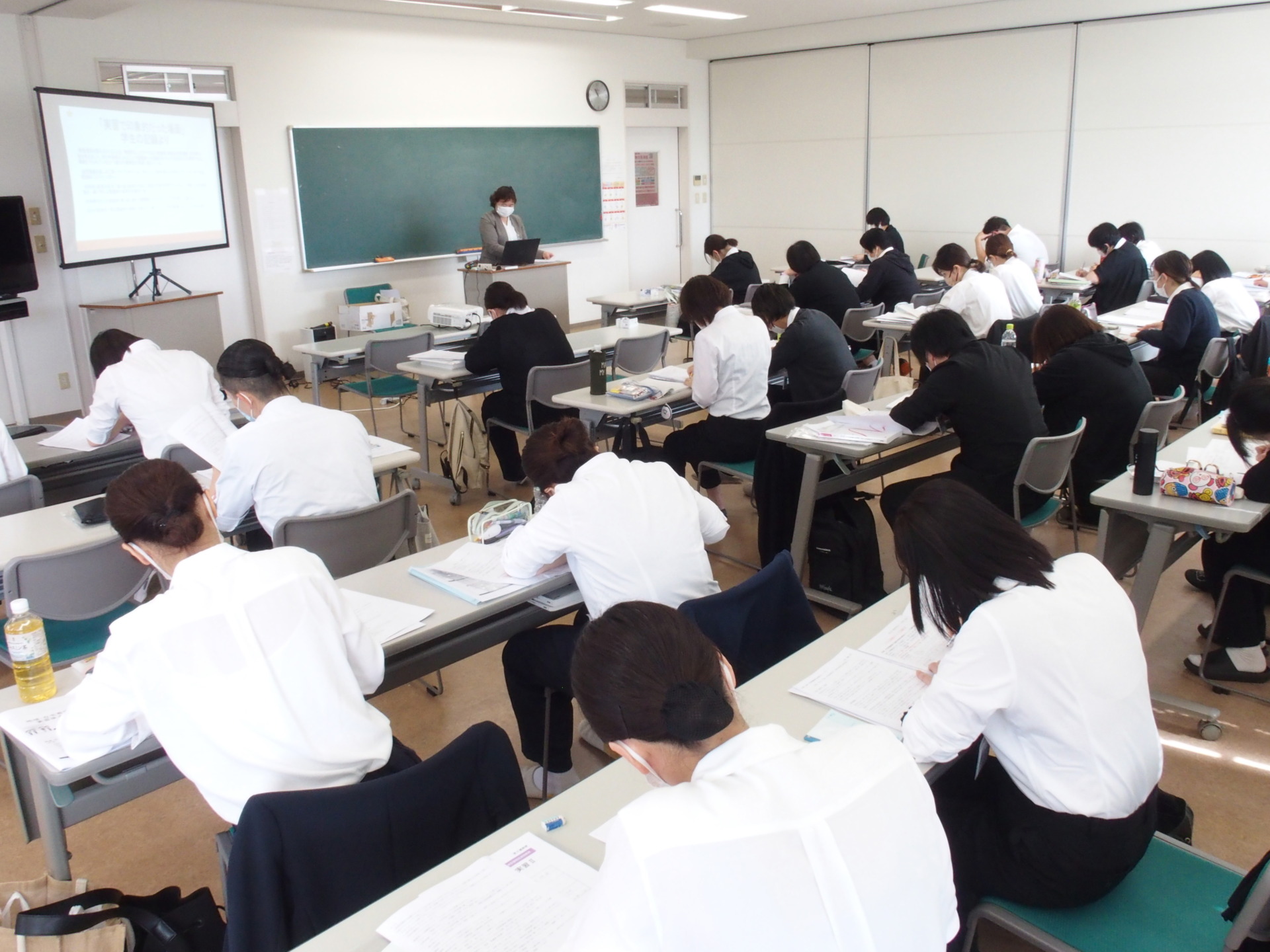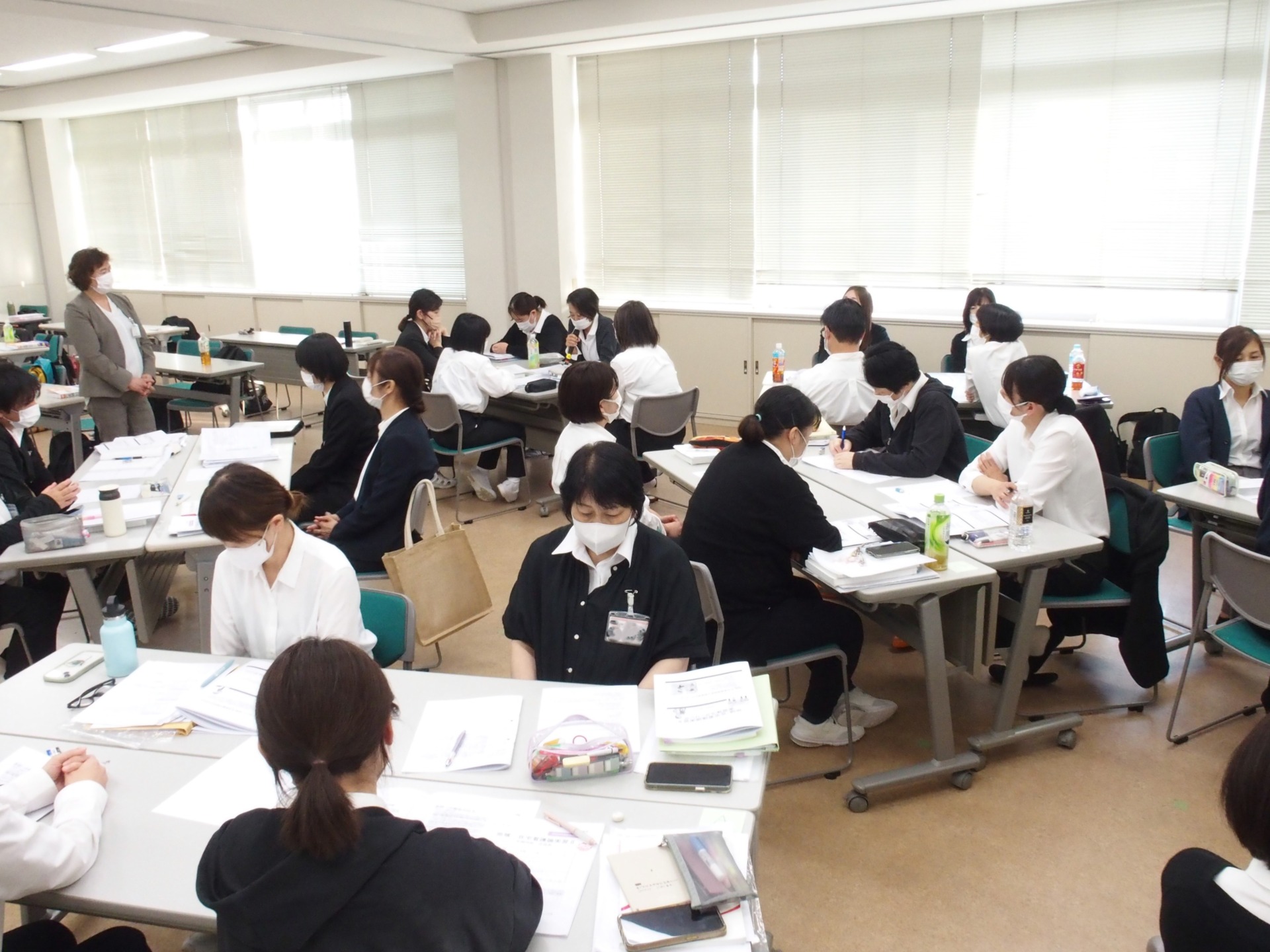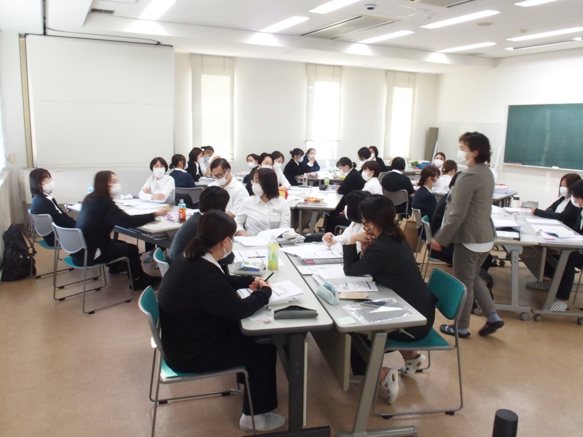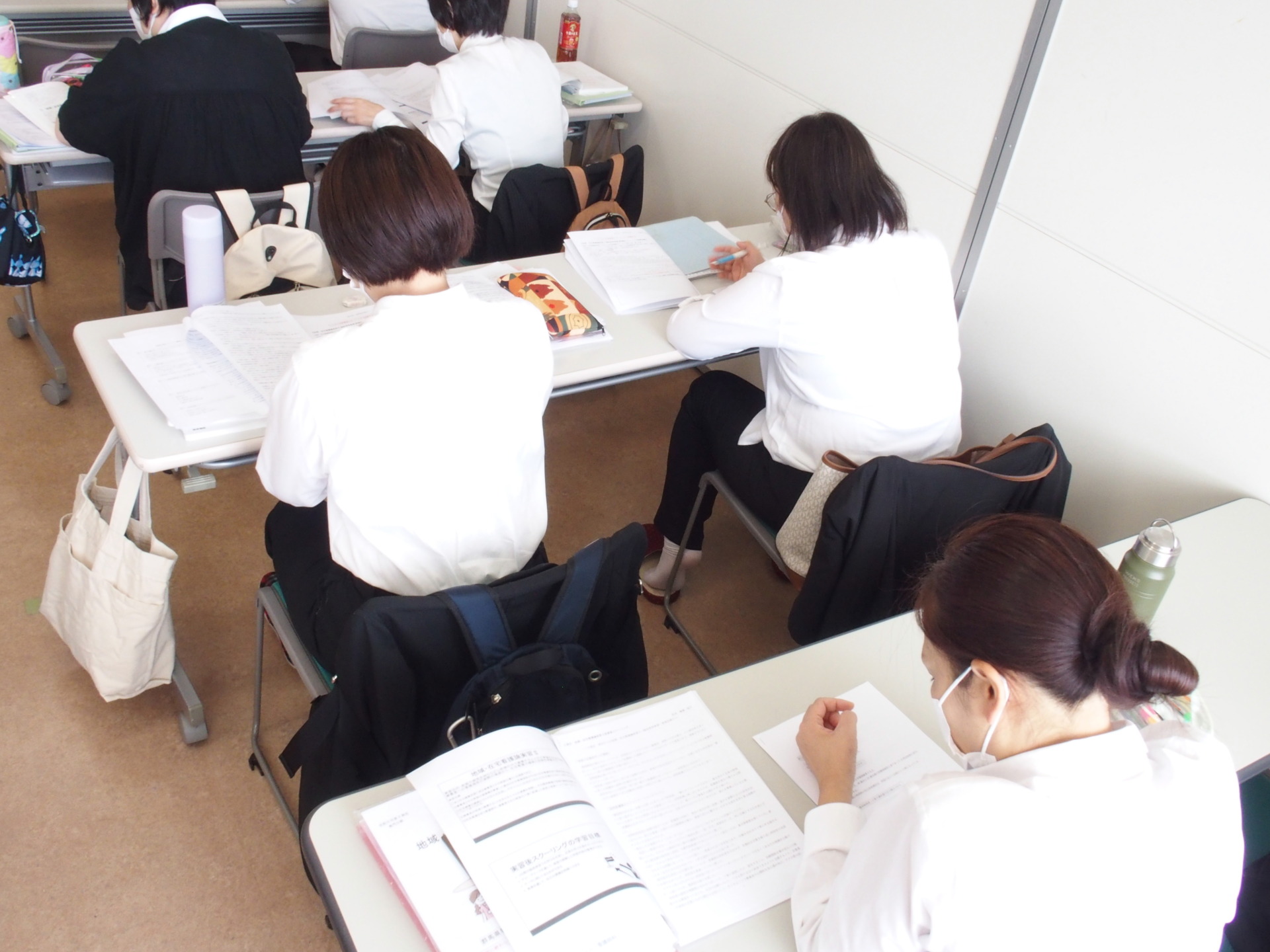 本日、高崎高松町キャンパスにて2年生に対する「地域・在宅看護論実習後A日程スクーリング」を行いました。30名の学生が出席。実習後スクーリングでは、主にグループワークを中心に授業を進めて参ります。初めに、①各自で実習の振り返りを行い、②グループに分かれてグループ内での情報共有、③テーマを決めてグループ毎でレポートを作成しておりました。