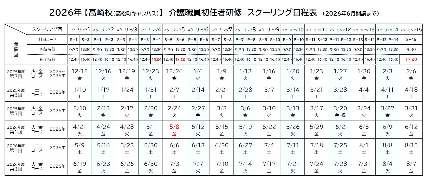 高崎校にて2026年4~6月に開講する介護職員初任者研修の日程が決まりました。
