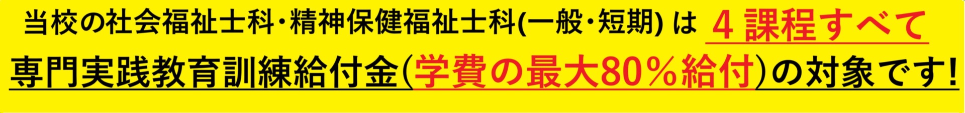 当校の社会福祉士科一般養成課程・短期養成課程、精神保健福祉士科一般養成課程・短期養成課程は全て専門実践教育訓練給付制度の対象の講座になっています。