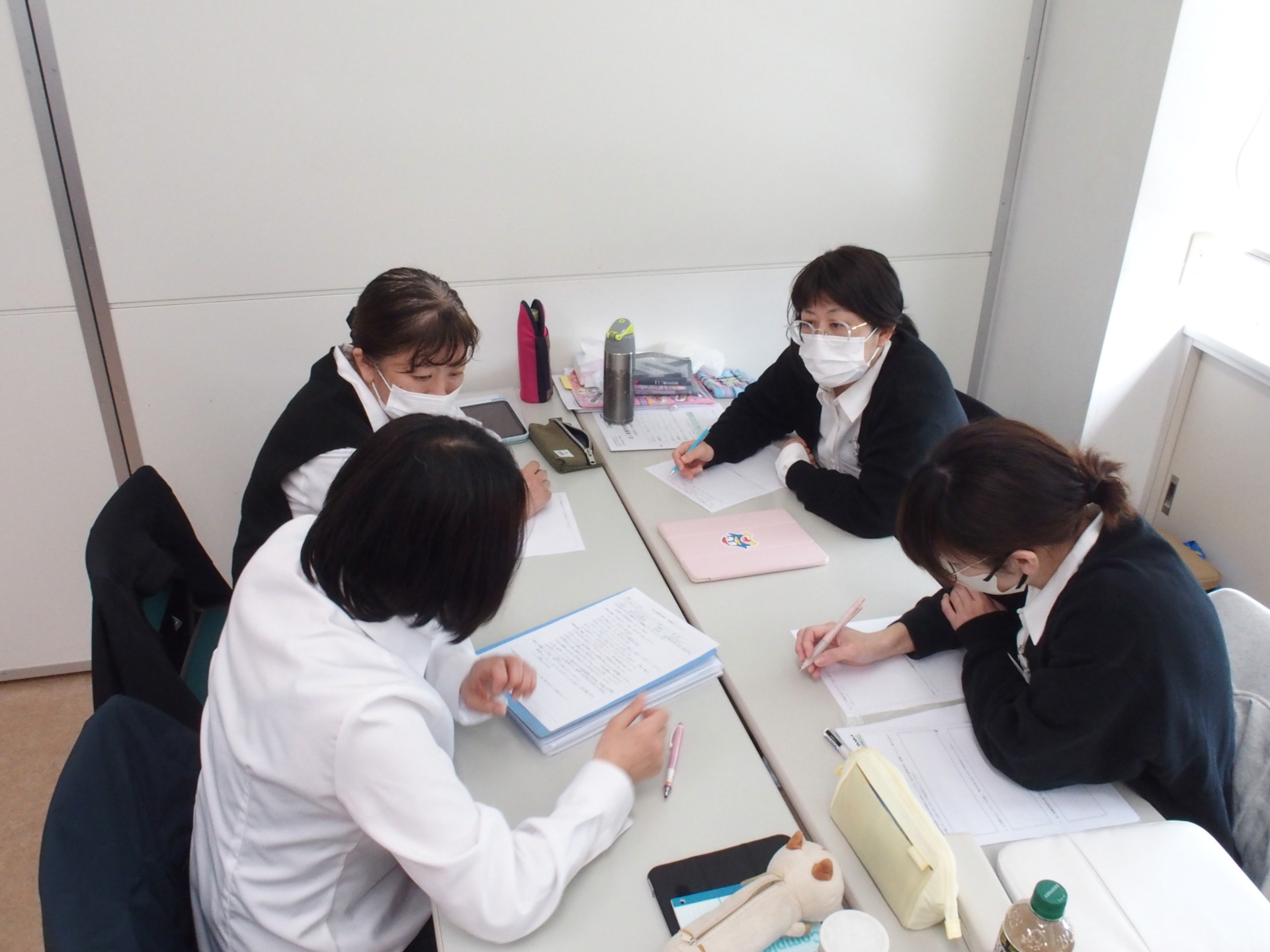 本日、4月2日(木)高崎高松町キャンパスにおいて5期生(高崎Bクラス)を対象としたスクーリングが始まりました。「成人看護学実習後1日目」を行いました。学生は27名の出席。久々のスクーリングとなりました。それぞれの実習施設で実習を行い、グループワークで情報共有と学びを深めていきました。グループ毎の発表もありますが、学生全員が真剣に取り組んでいました。