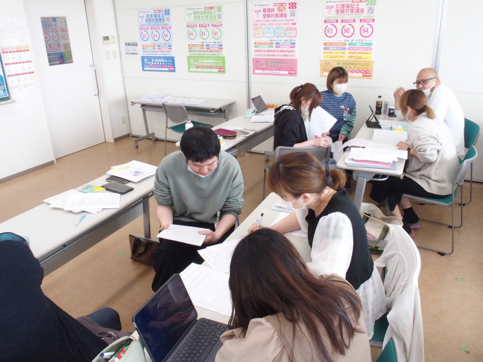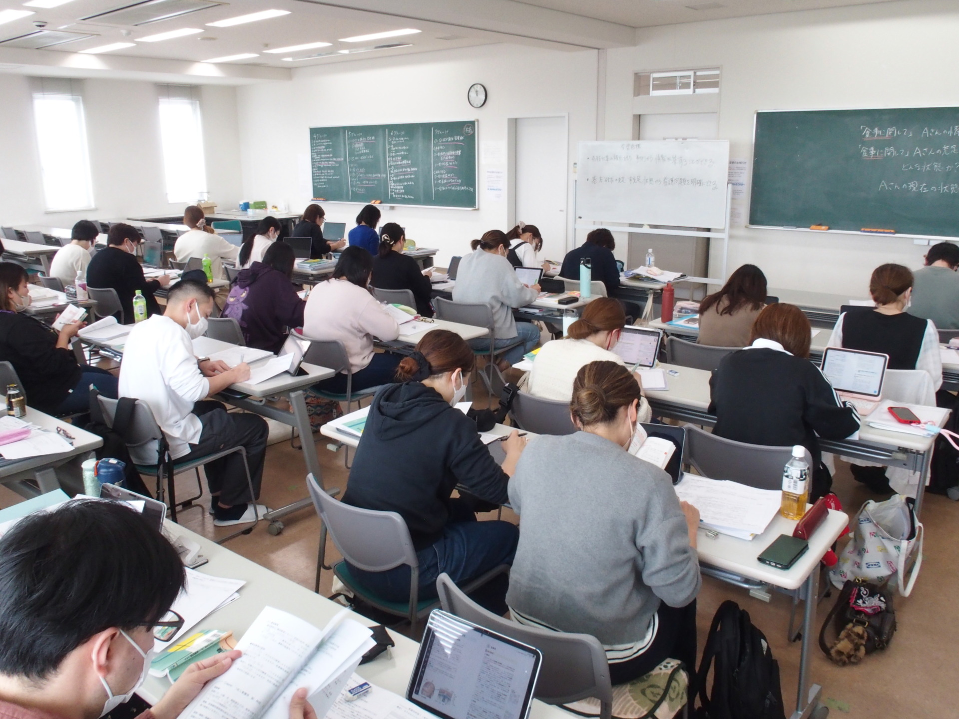 本日、4月14日(火)高崎高松町キャンパスにおいて6期生を対象としたスクーリングを実施「基礎看護学Ⅱ(看護過程)2日目(高崎B日程)」を行いました。学生40名の出席となりました。看護過程を学ぶ3日間の2日目。事例について10グループに分かれて、項目ごとに各グループが意見や考え出し合い、看護問題を出していきます。学生たちは皆真剣に取り組んでおり、これから始まる、「紙上事例演習」へ向けてしっかりと学んでおりました。学生同士の協力、大切です。