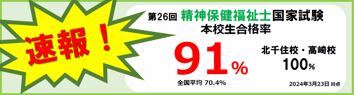 当校の精神保健福祉士科短期養成課程は国家試験合格者数10年連続日本一を達成しています!